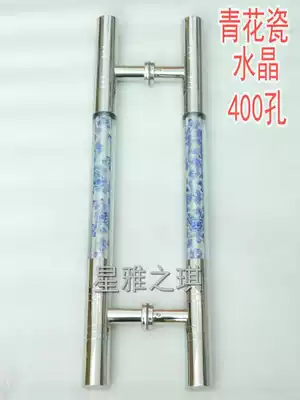 New crystal handle glass door handle Stainless steel black grid-blue and white porcelain-bubble crystal handle 40 holes