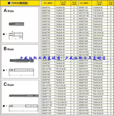 SHAOWEI Extra long plum blossom type batch nozzle knife head extended plum blossom batch head T30 display rack batch head star batch head