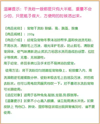Pet rabbit guinea pig Dutch pig dog cat dry cleaning powder deodorizing bath cleaning soft fragrance antibacterial deodorant