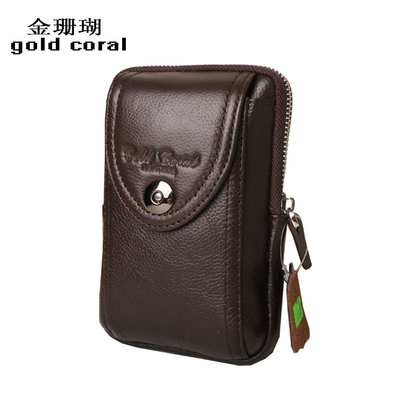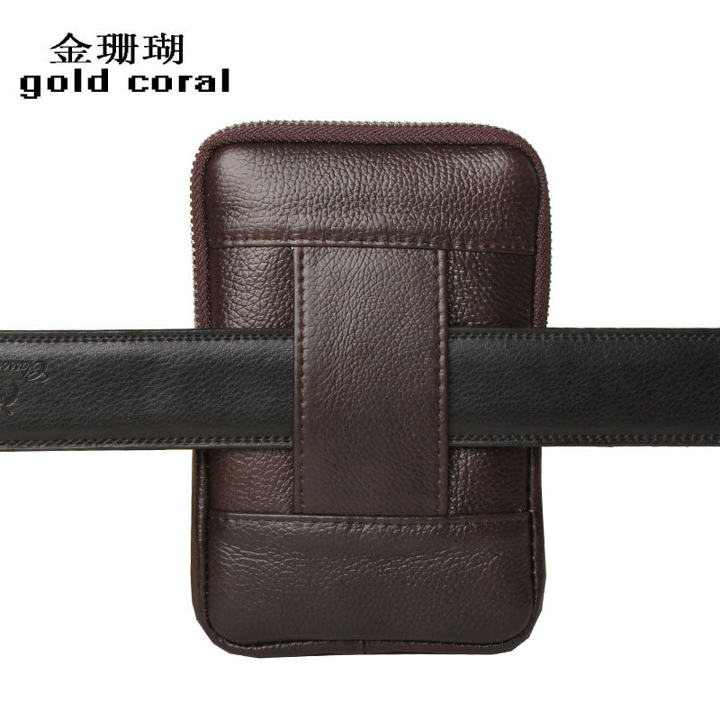 Men's leather pockets 5 5 5 inches 5 6 6 inches 6 3 inch head layer cow leather mobile phone bag wearing leather belt outdoor money card bag