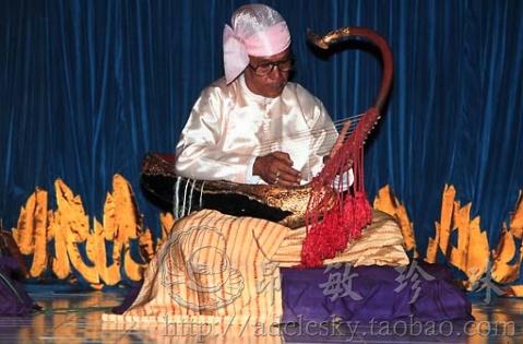 Myanmar harp Musical instrument Craft gift decoration Curved piano on banknotes Saung-Gauk Fengshou Konghou 16 strings 1 meter