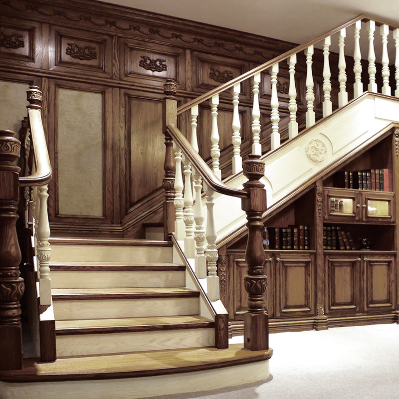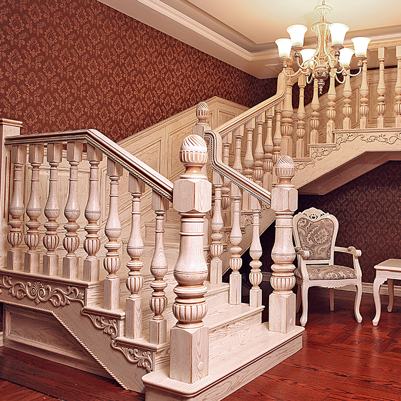 LEKO solid wood staircase American red oak arc integral staircase step handrail window sill railing Chongqing custom