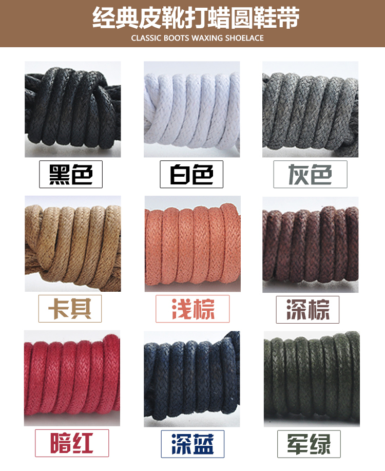 Waxed round-black waxed round-white waxed round-grey waxed round-dark blue with waxed round-brown waxed round-light brown waxed round-dark red waxed round-dark red