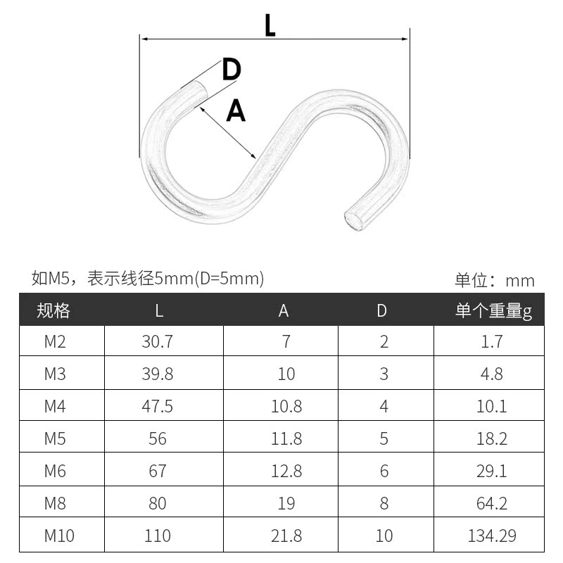 304 S-type hook M2-M10