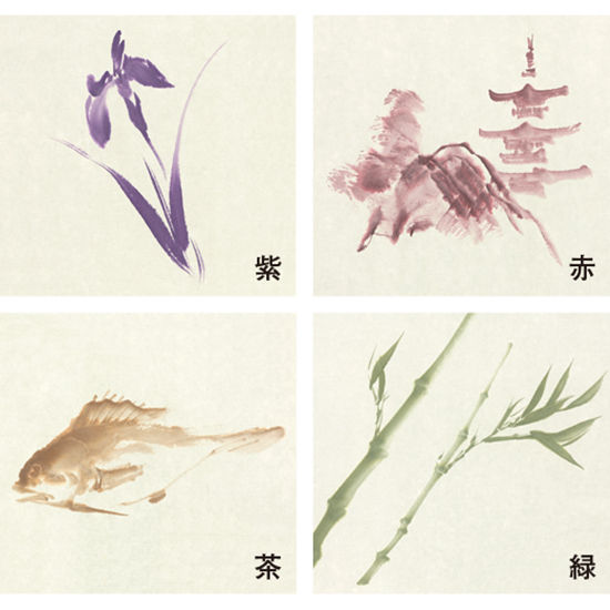 Japan imported Wu Bamboo pigment ink 4 color set color ink ink painting works with ink blocks ink strips ink ingots