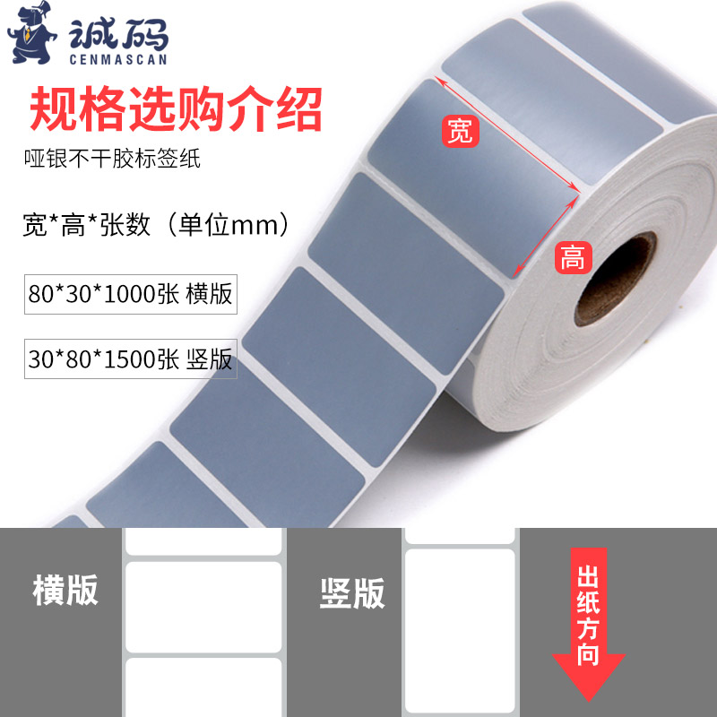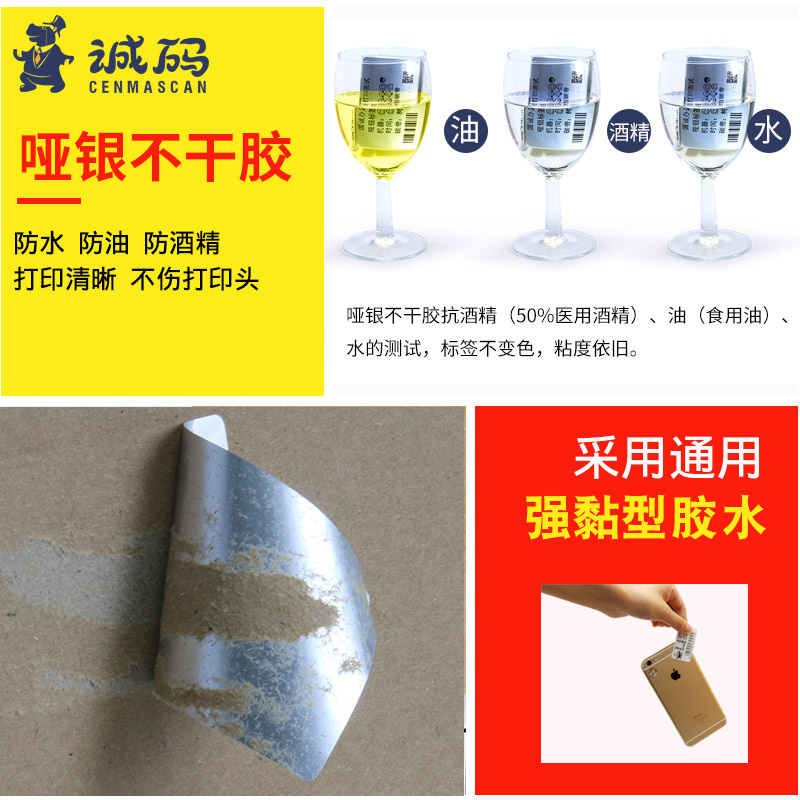 Asian silver label paper Self-adhesive matte silver printing equipment Blank pet printing paper high temperature resistant bar code ribbon printer Muffler silver dragon color waterproof sticker 50*40*30*35*20