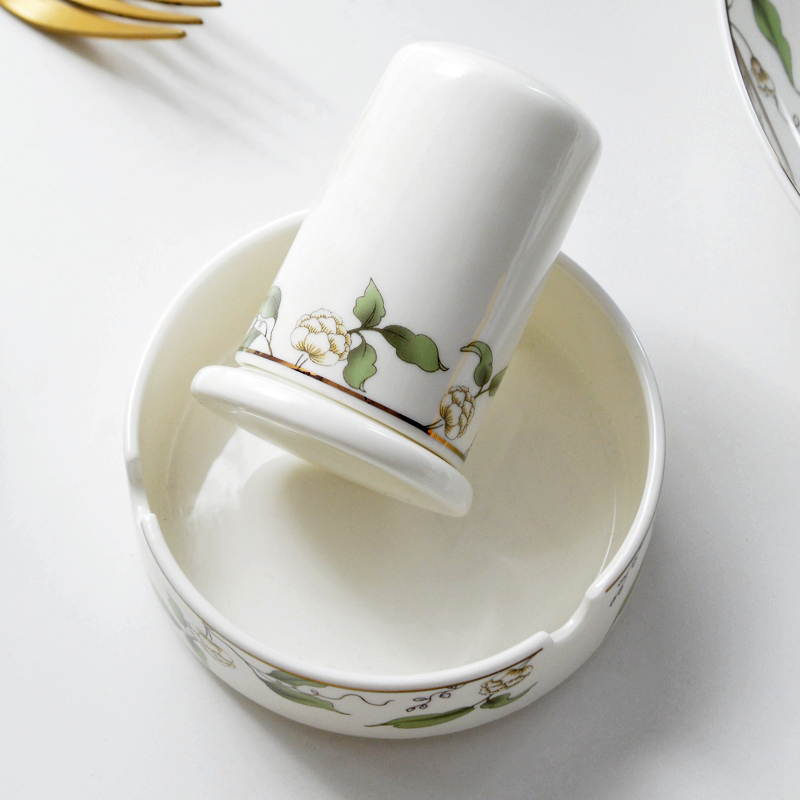 Shengpu Creative Bone China Toothpick Box Ceramic Toothpick Holder Ceramic Ashtray Ashtray Tableware Set