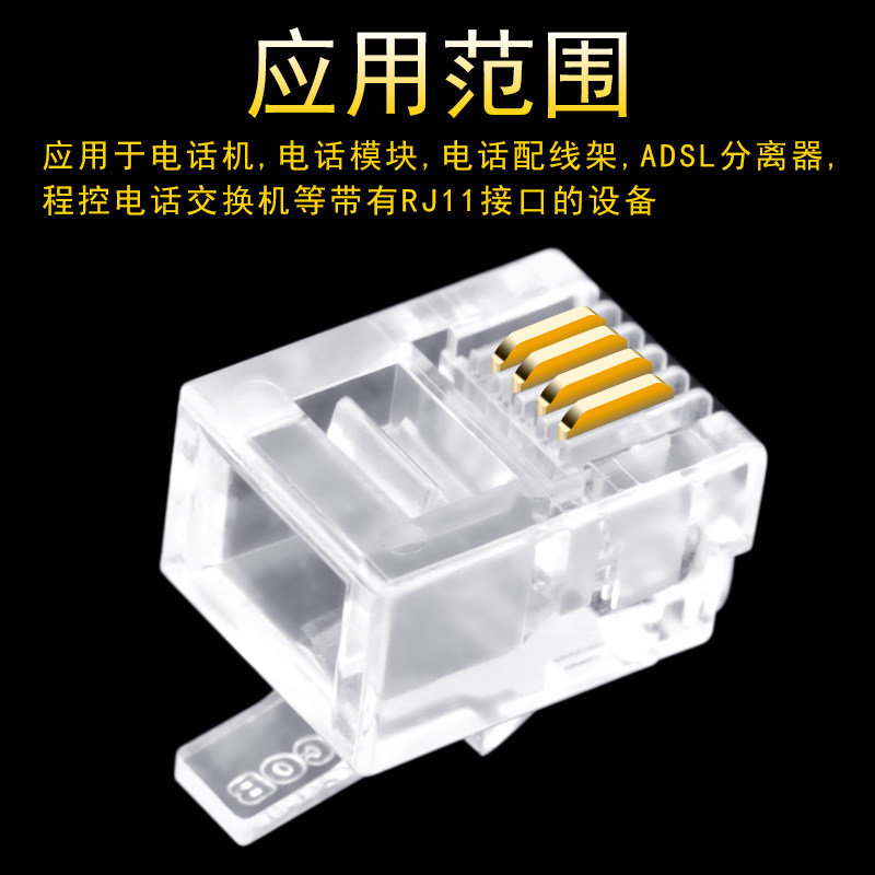 CNCOB gold plated 6P4C telephone line crystal head 4 core telephone line connector four core RJ11 joint 100