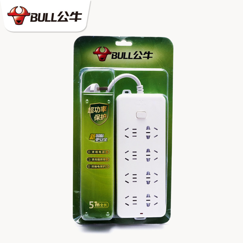 Bull Bull socket multi-function intelligent plug row with over-power overload protection 10 meters male afternoon row plug board