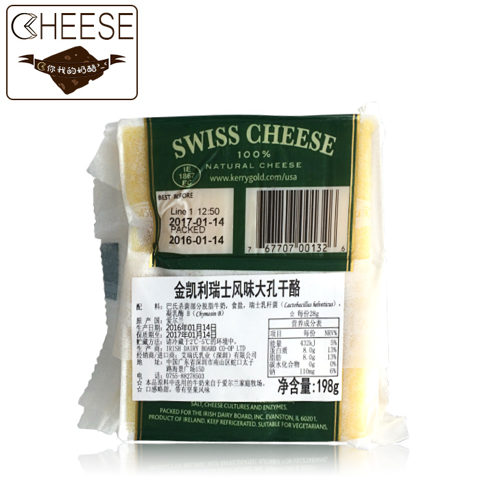 Golden Kelly Swiss Macroporous Cheese High Calcium Ready-to-use Pasteurized Cheese Baby Deputy Food Light Taste Original Cheese Block