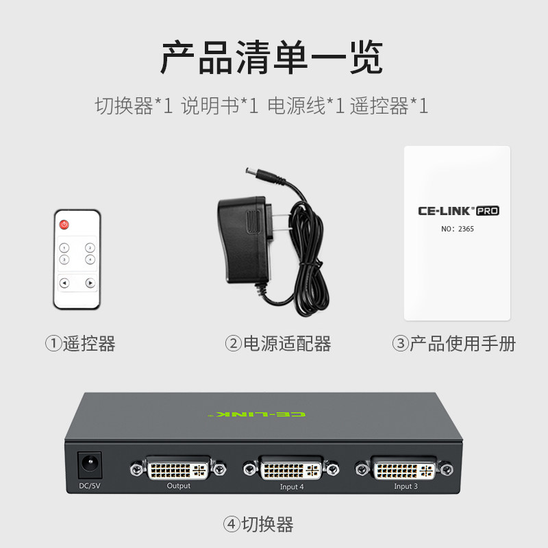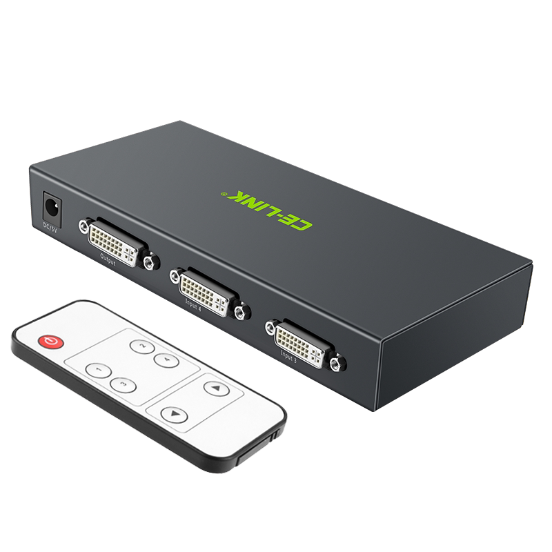 CE-LINK DVI Switch 4 in 1 out HD video with remote control DVI splitter 24 in 1 out 4 ports