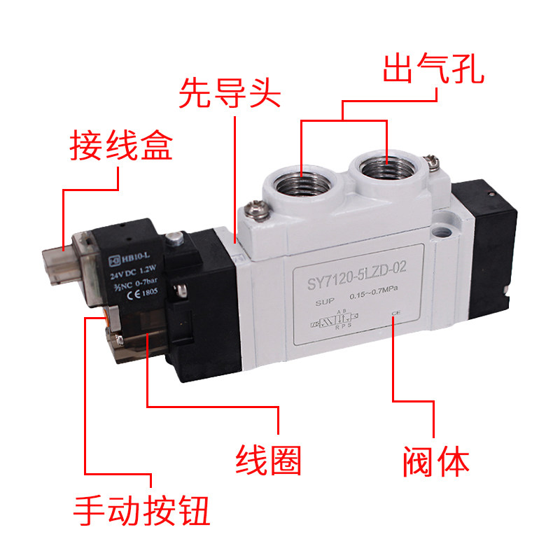 Two-position five-way solenoid directional valve SY5120-5LZD-01 SY7120-5LZD-02 9120-5LZD-03