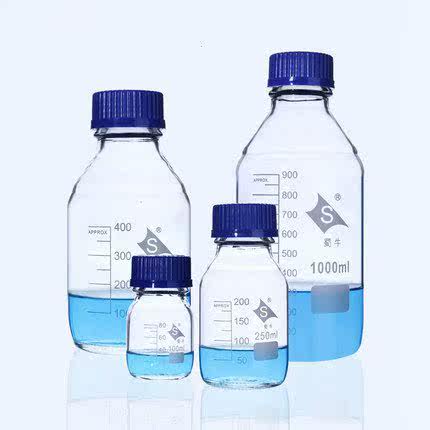 100ml blue cover reagent bottle Shu Bull screw mouth bottle reagent bottle transparent glass sample bottle silk mouth reagent bottle