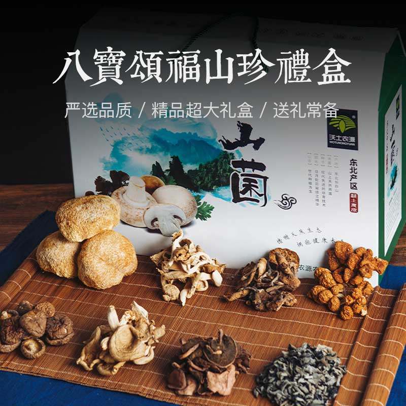 Mountain treasure dried goods Northeast specialty mushroom New Year goods Spring Festival New Year gift gifts elderly gift box package