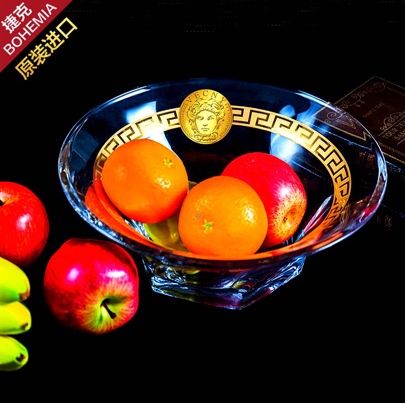 Czech insert gold BOHEMIA crystal fruit tray melon fruit bowl fruit bowl fruit bucket European-style imported fruit pan dried fruit