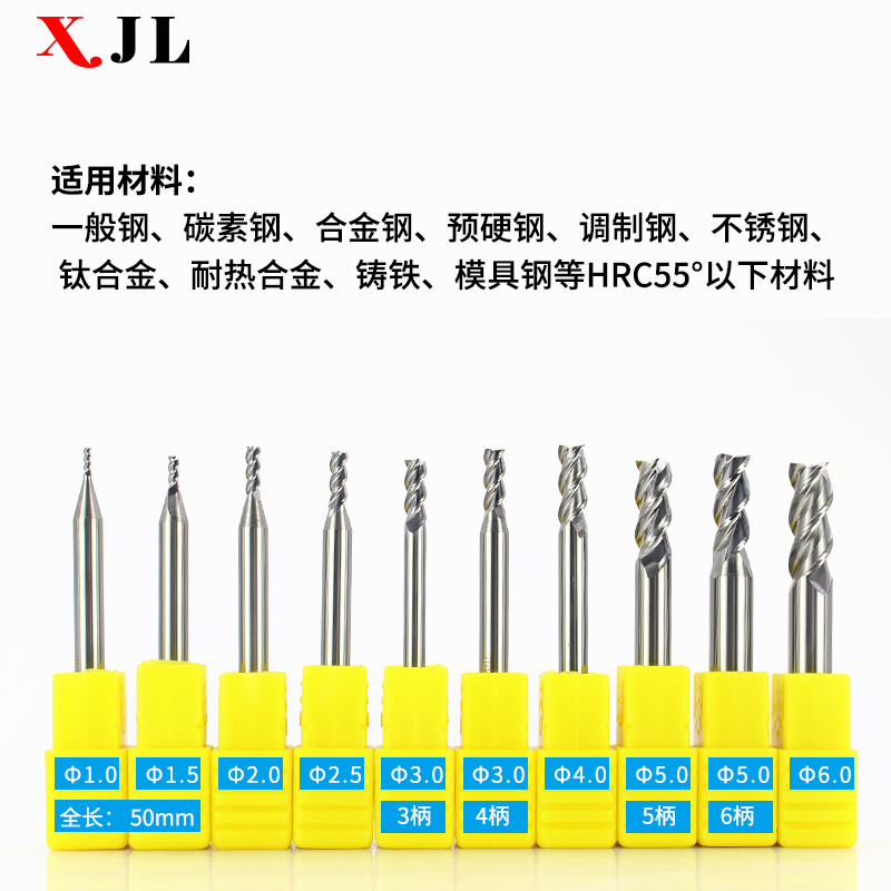 XJL milling cutter 55 degrees aluminum milling cutter 3-edge high-gloss aluminum alloy milling cutter Tungsten steel end milling cutter 1 to 12mm aluminum