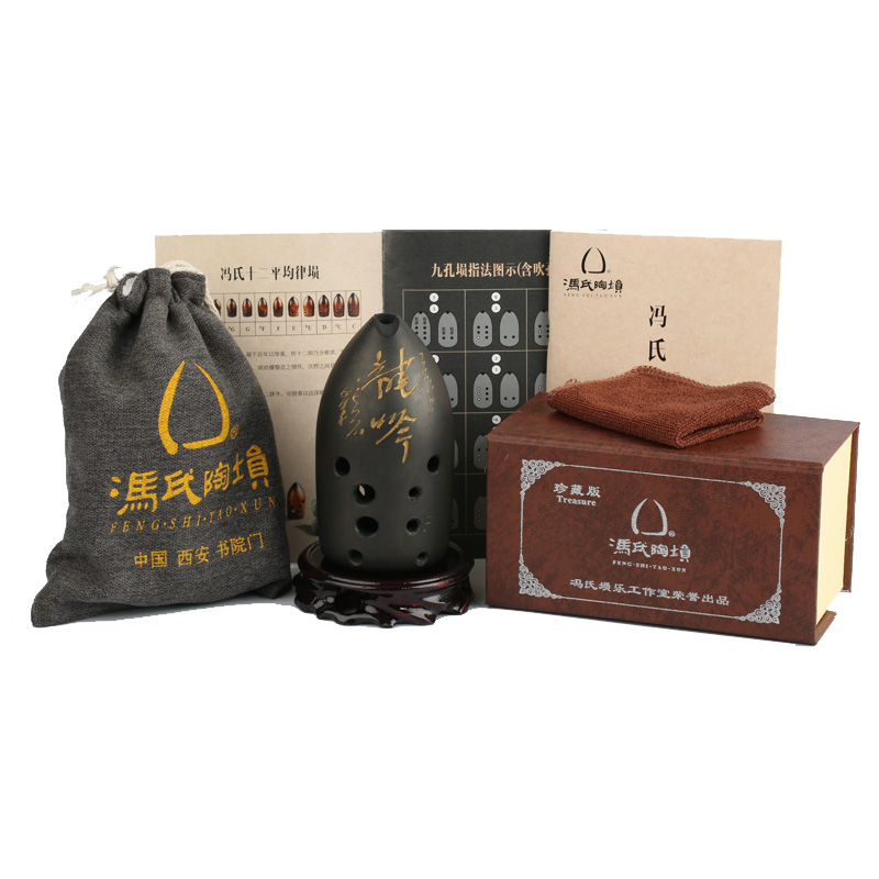 Feng's Tao Xun improved ten-hole 10-hole black pottery Xun beginner professional pen holder double-cavity meteorite playing national musical instruments