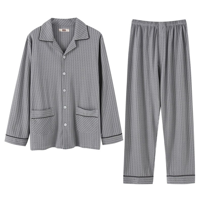 2021 autumn winter thickened pure cotton long sleeve male pyjamas in older male pyjamas spring and autumn cardio-hoodie dads pajamas pyjamas