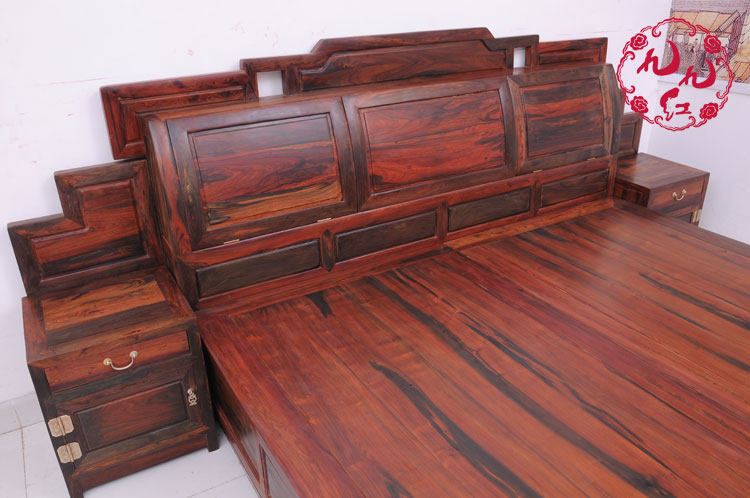 Mahogany furniture Chinese style full solid wood Laos big red rosewood double bed Ming and Qing classical Cochin Dalbergia complete set