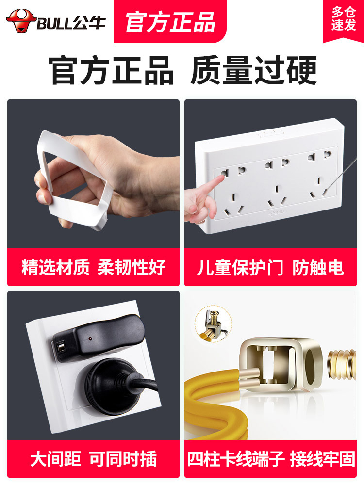 Bull's clear socket panel with switch ultra thin wire wall fixed 16a bright box 5 hole porous household porous