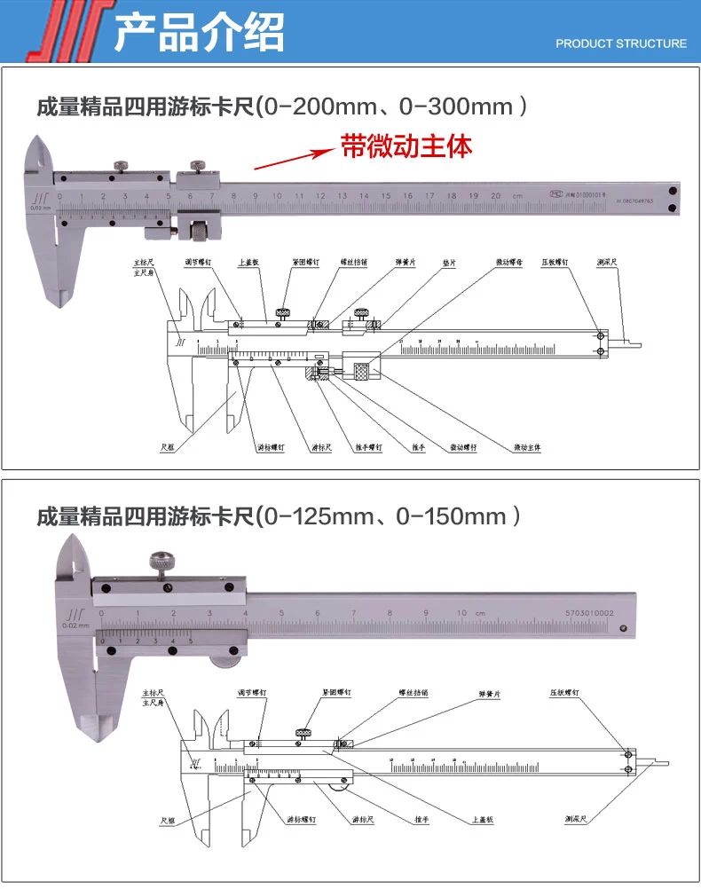 Quantitative stainless steel four-purpose vernier caliper 0-70-100-125-150-2000