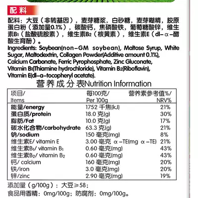 Northeast Soybean Maltose Syrup White sugar Calcium Carbonate Zinc Gluconate Vitamin B1 Vitamin B2 Modified Soybean phospholipids(0 25%)