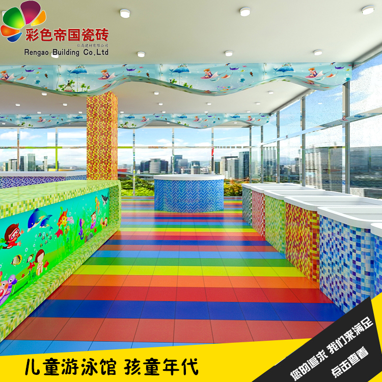 Color Tile Kindergarten Pure Color Brick Makeup Room Wall Brick Cartoon Children Room Bathroom kitchen Green 300 Floor Tiles
