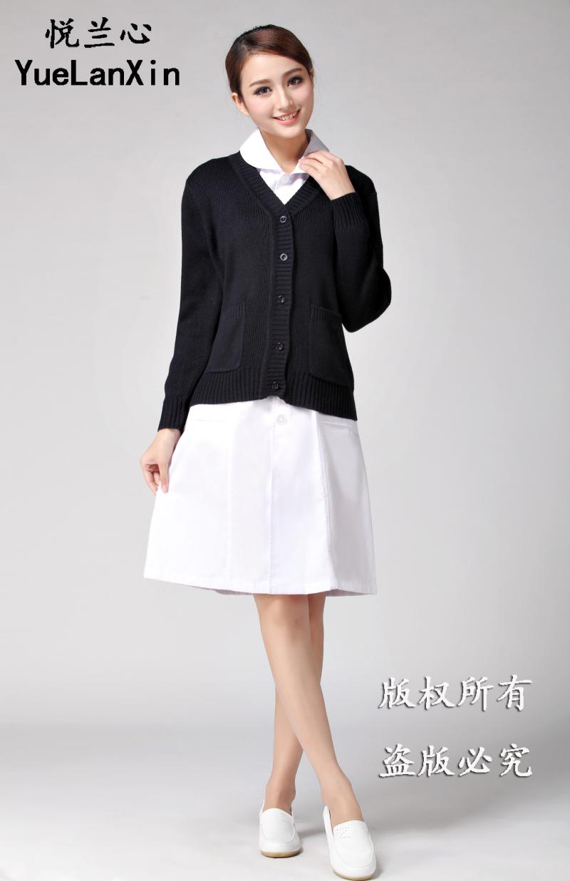 Yue Lan heart nurse sweater deep Tibetan blue thick nurse coat plus velvet Cardigan mother sweater doctor's clothing