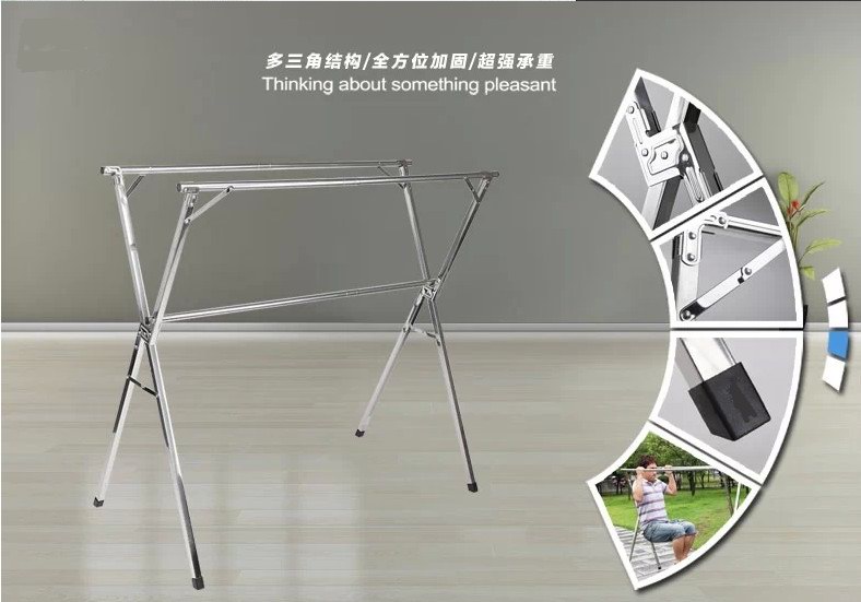 Simple stainless steel X-type floor-to-ceiling folding hanger room built-in telescopic drying clothes lifting rack