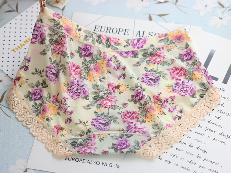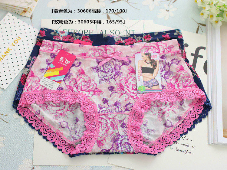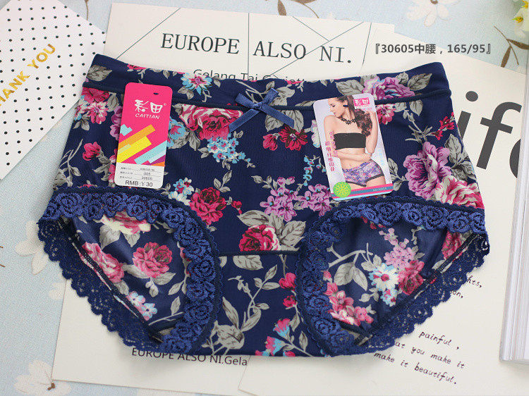 Caitian 30605 mid-waist 30606 high-waist smooth and breathable milk ice silk screen printing flowers comfortable women's panties