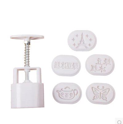 Oval Green Bean Cake Mold 50g Hand Press Style Ice Skin Mooncake Mold Green Bean Cake With pattern 5 Flake Baking Mold