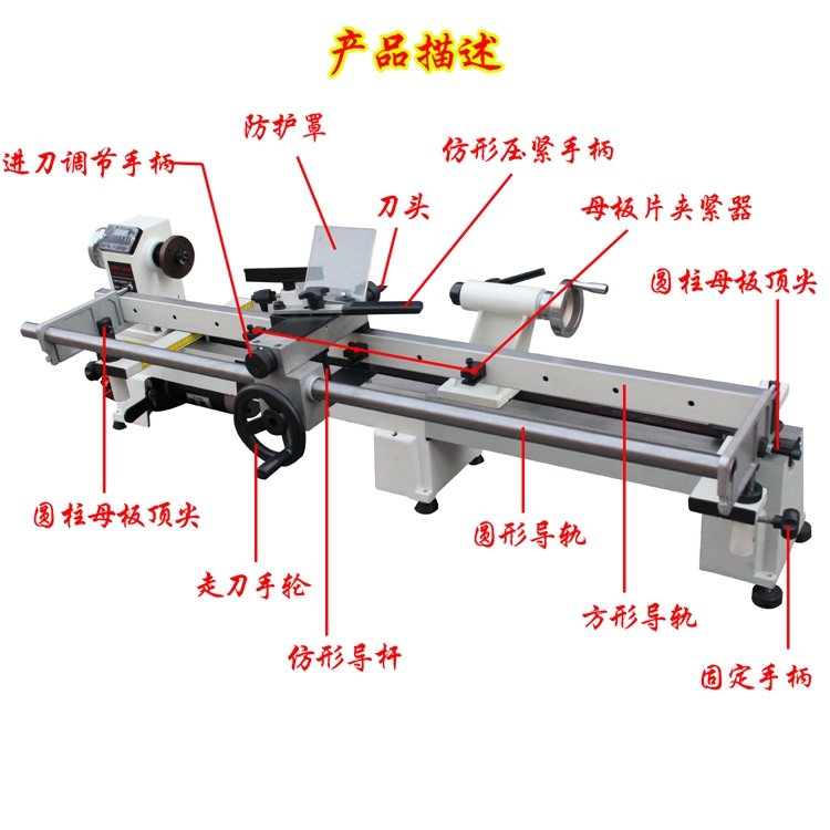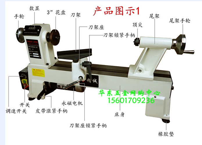 Woodworking lathe 750W lengthened rail 6 piece knife set 5 piece of knife 6 "linked clamping 4" linkage clamping clamp mixed frame rock modeled frame Guide rail 3" clamp clamp drilling tool drilling head woodworking car