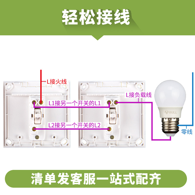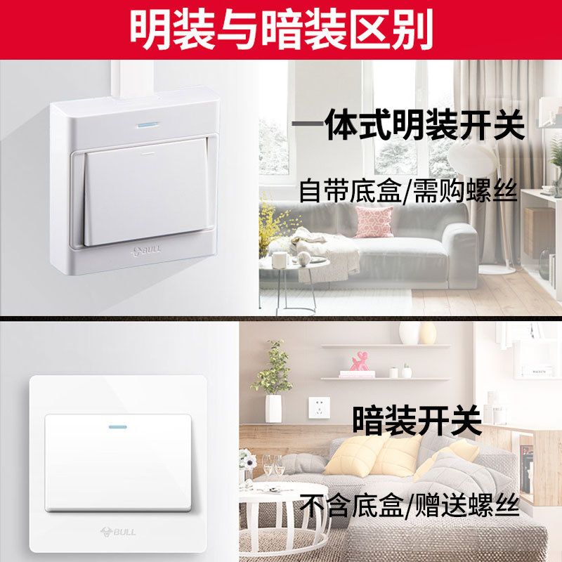 Bull open installation one open double cut switch Single open double cut panel wall two control household bed head double electric lamp one