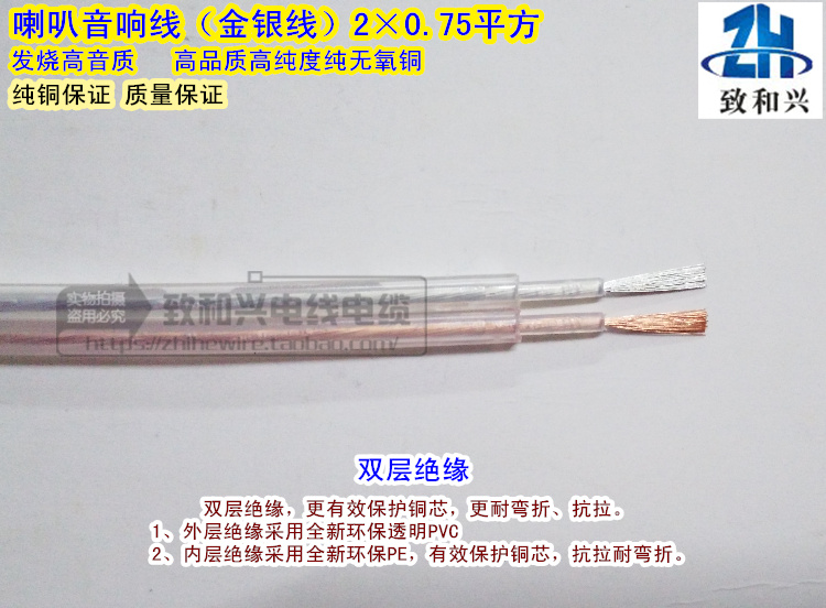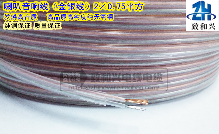Pure copper audio cable 2*0 75 square transparent gold and silver wire radio amplifier speaker speaker cable audio cable 100 meters
