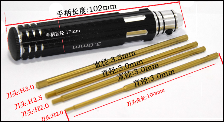 Import lengthened HSS high-speed net inner hexagon wrench screwdriver plated titanium alloy knife head 1 5-2-2 5-3mm tool