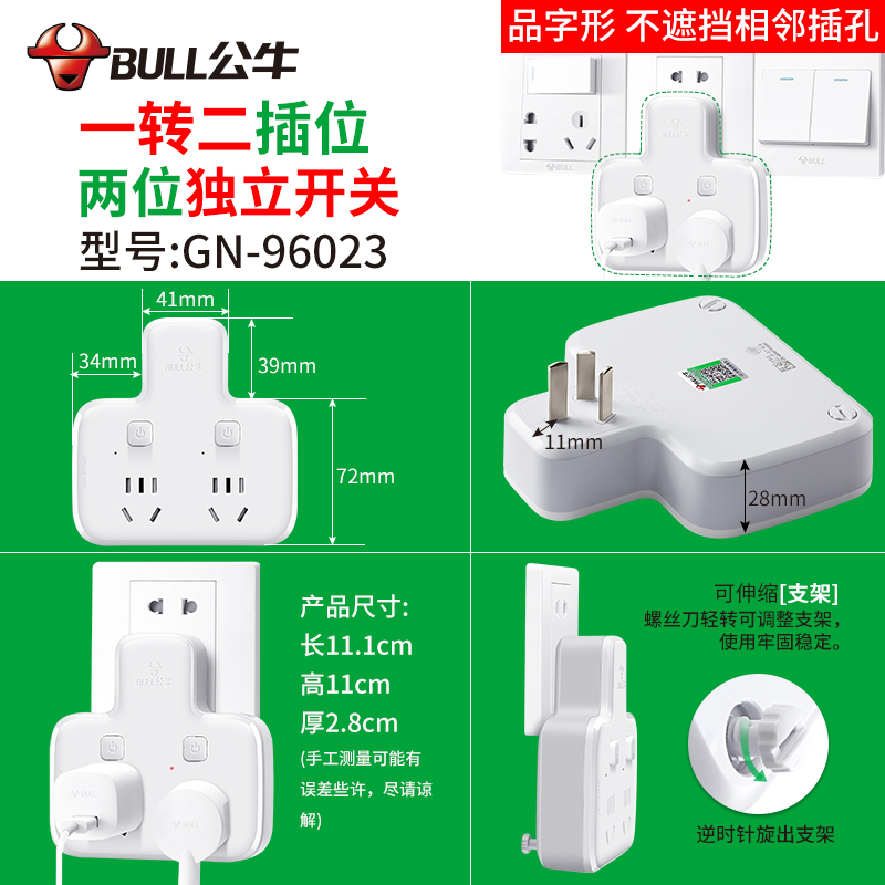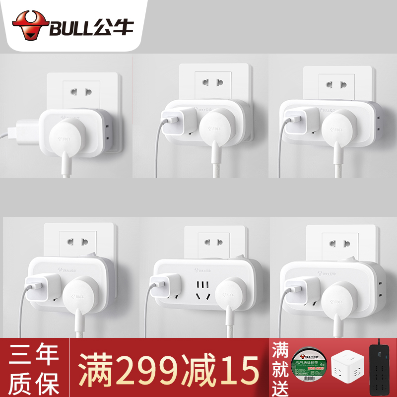 Bull socket conversion plug converter One-turn multi-power extension home wireless one-point two-drag three plug row