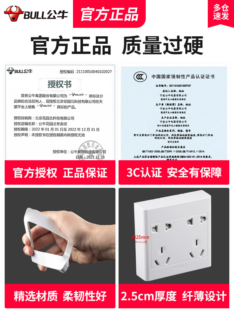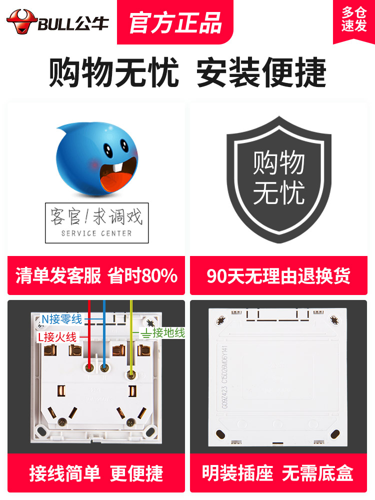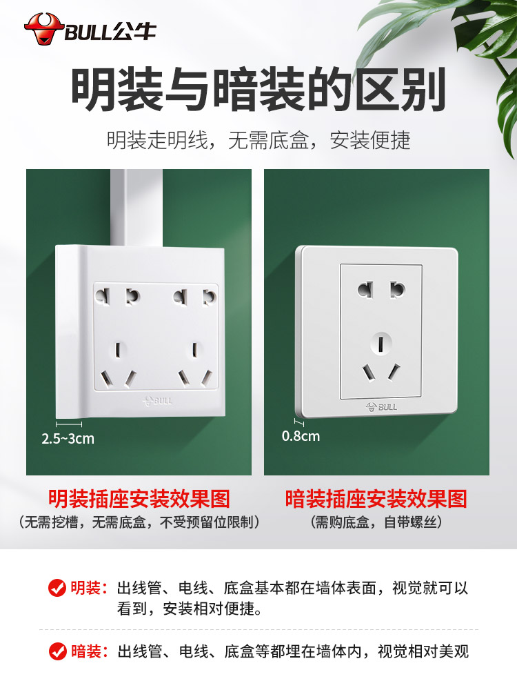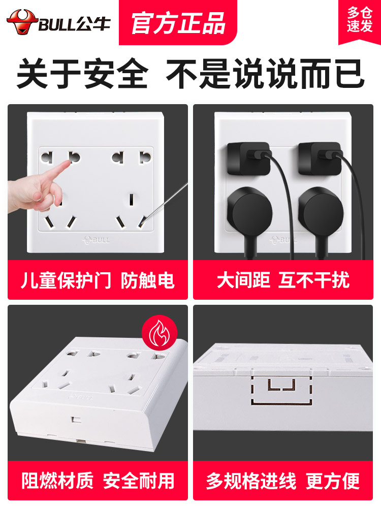 Bull Bright Dress Socket Bright Line Switch Panel Home 10 Holes ten Holes Five 6 Holes Six-hole Three Holes 5 Holes Wall Type Wall