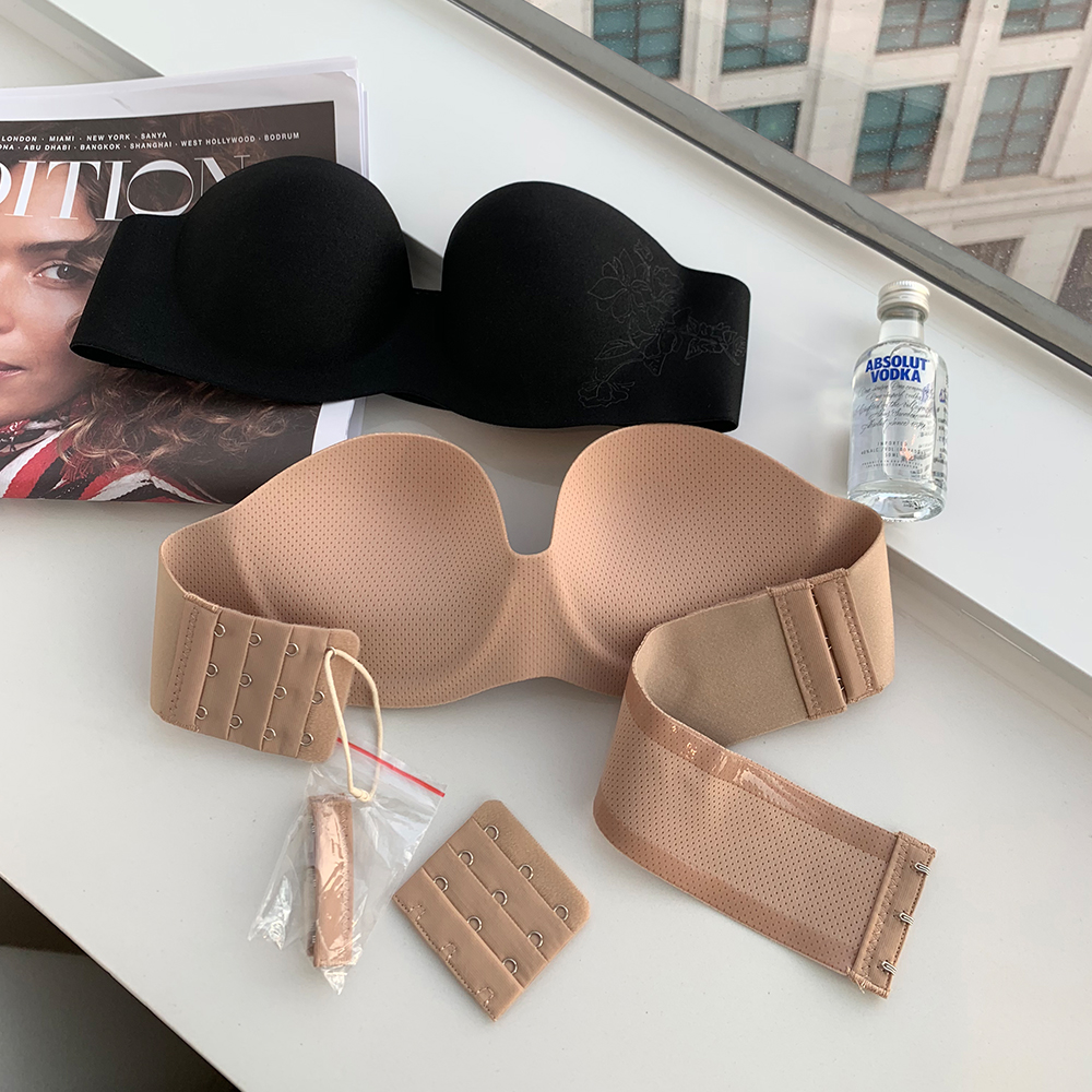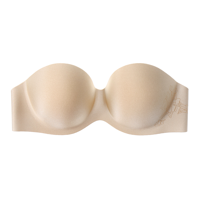 Summer one-piece without shoulder strap invisible bra No-mark wedding dress sexy poly-woo half-cup anti-slip back bra