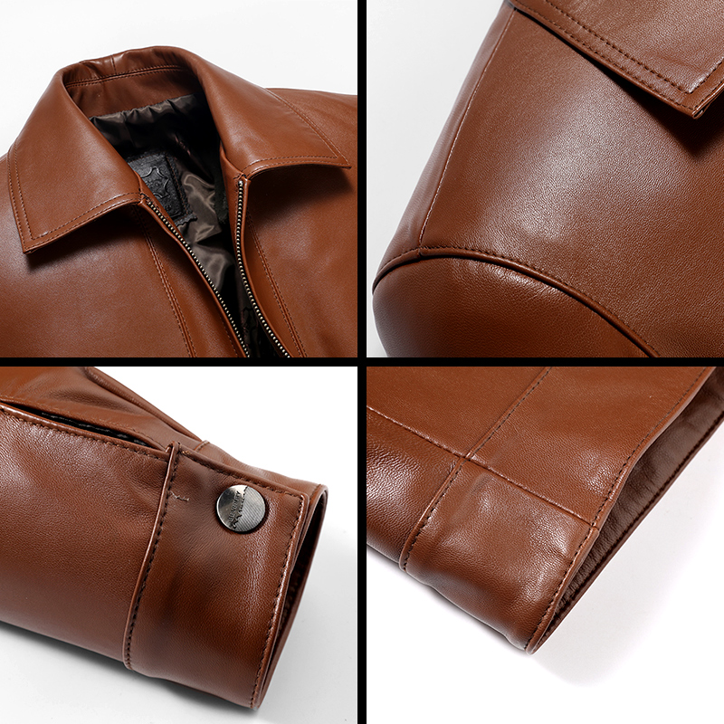 Bifili men's lapel leather jacket head layer sheep leather Haining middle-aged dad leather jacket leather jacket