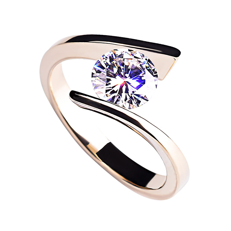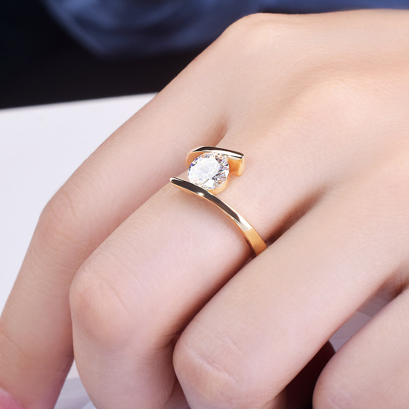 American Mozambique ring 18K gold gold 1 carat 50 - point diamond ring simple twisted arm sweet wedding ring
