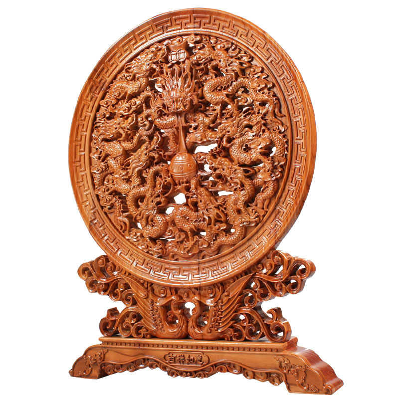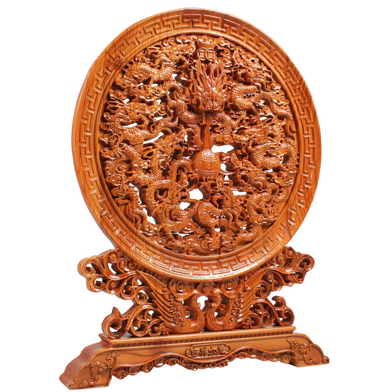 Ji Chenxuan Kowloon laying flowers and wood pendulum pieces Longfeng in Xiangxiang Wooden Sculptor's Ornament Living Room Bedroom Pendulum