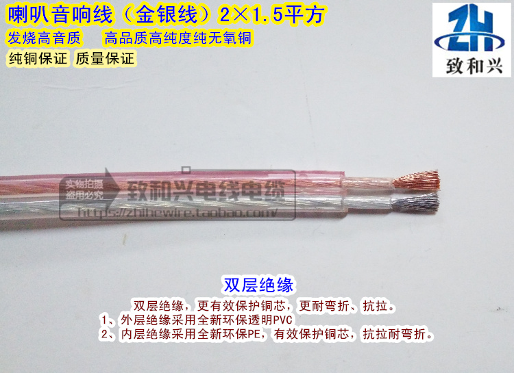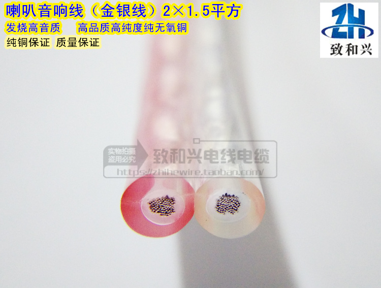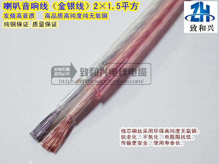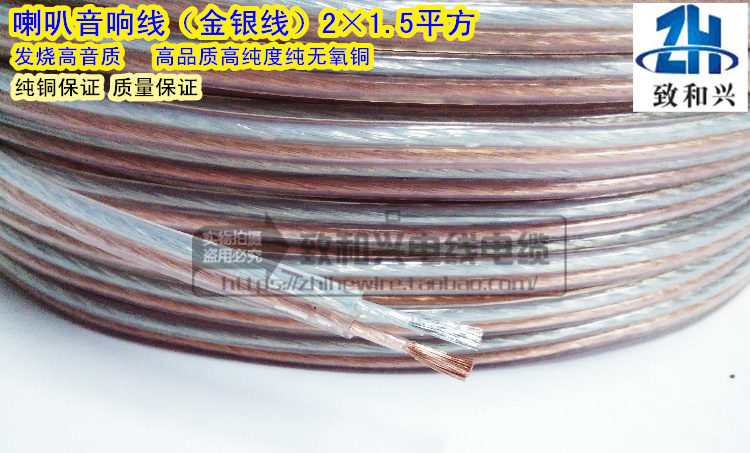 Pure copper audio cable 2*1 5 square transparent gold and silver wire radio amplifier speaker speaker fever audio cable 100 meters