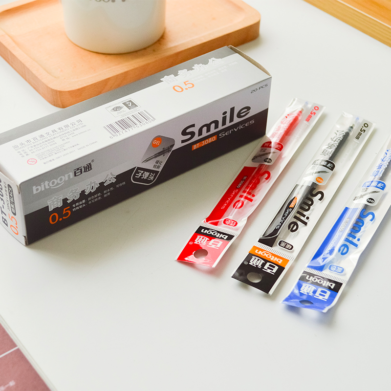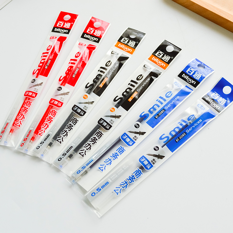 Korean style stationery full needle tube bullet neutral refill 0 5 carbon water-based refill black red blue ink blue