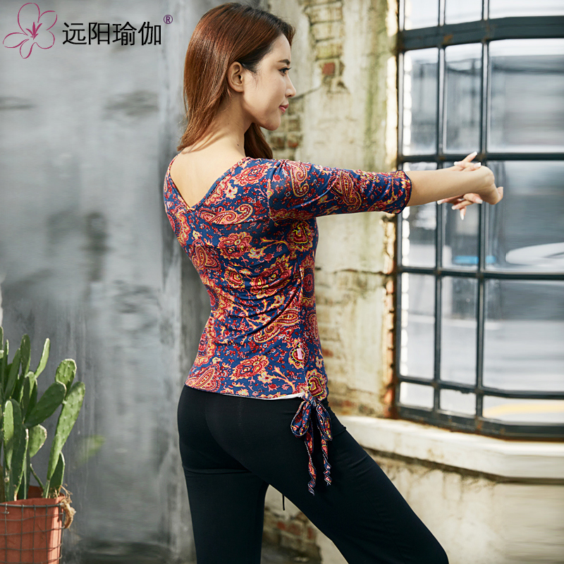 Yuanyang yoga suit women's printed dress Yoga fitness dance suit top sports fitness suit set thin fashion