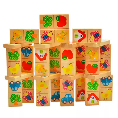 Animal fruit puzzle pairing Solitaire dominoes building blocks 1-3 years old baby monteshi early education children's educational toys
