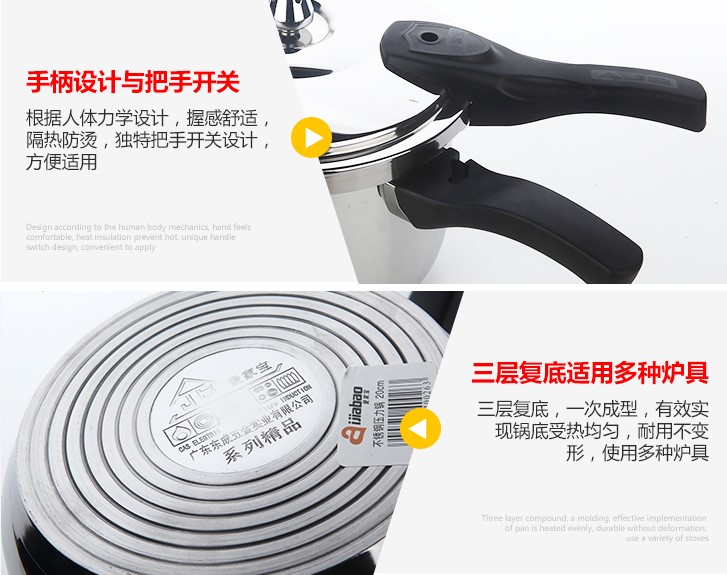 304 stainless steel pressure cooker Aijiabao 20 22 24 26cm Pressure cooker Gas induction cooker open flame
