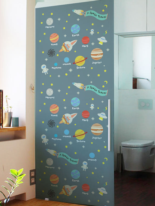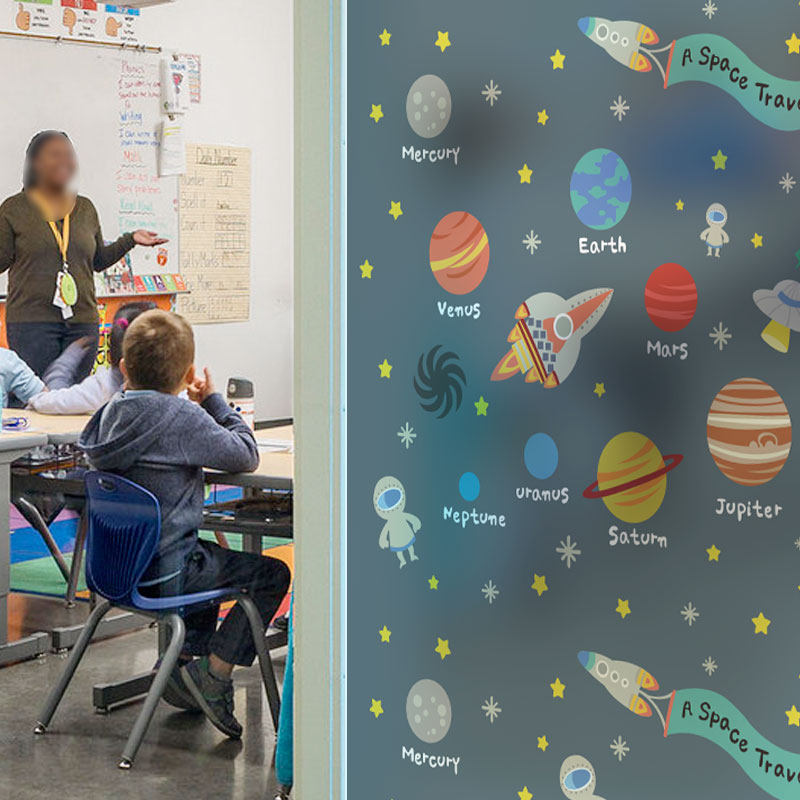 Love stickers custom glass film cartoon kindergarten training class School decoration Children's planet-travel in space