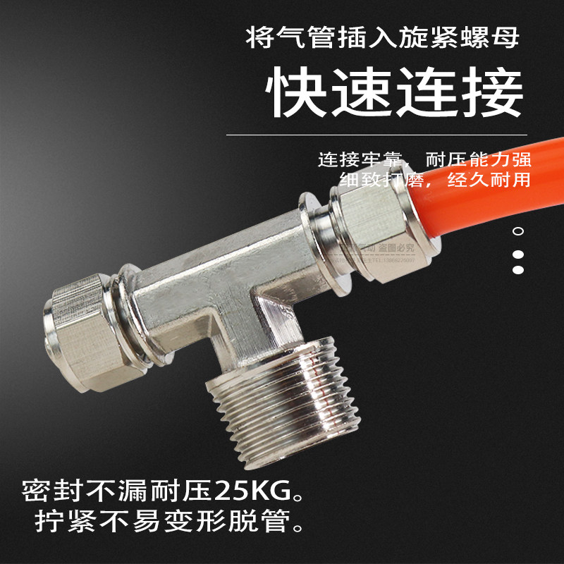 Copper Pneumatic Fast splicing head PB T type tee thread quick PB6-01 PB6-01 PB8-02 PB10-03 12-04 PB10-03