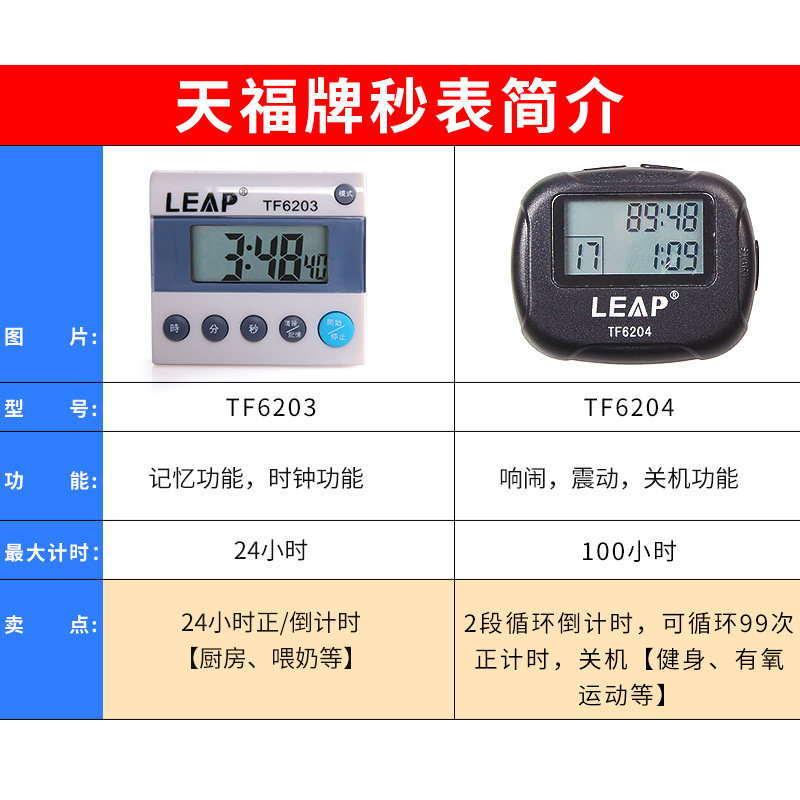 Tianfu TF6204 Training Interval Exercise Timer Professional Fitness 6203 Kitchen Countdown Timer Electronic Stopwatch