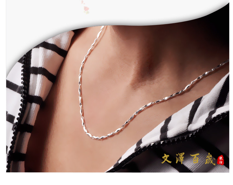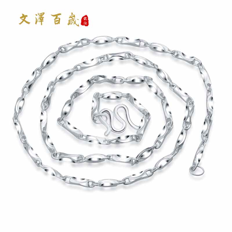 Wenze Centennial Silver Square 99 Silver Chain Thin Chain Couple Ingot Chain 99 Silver Necklace NO385